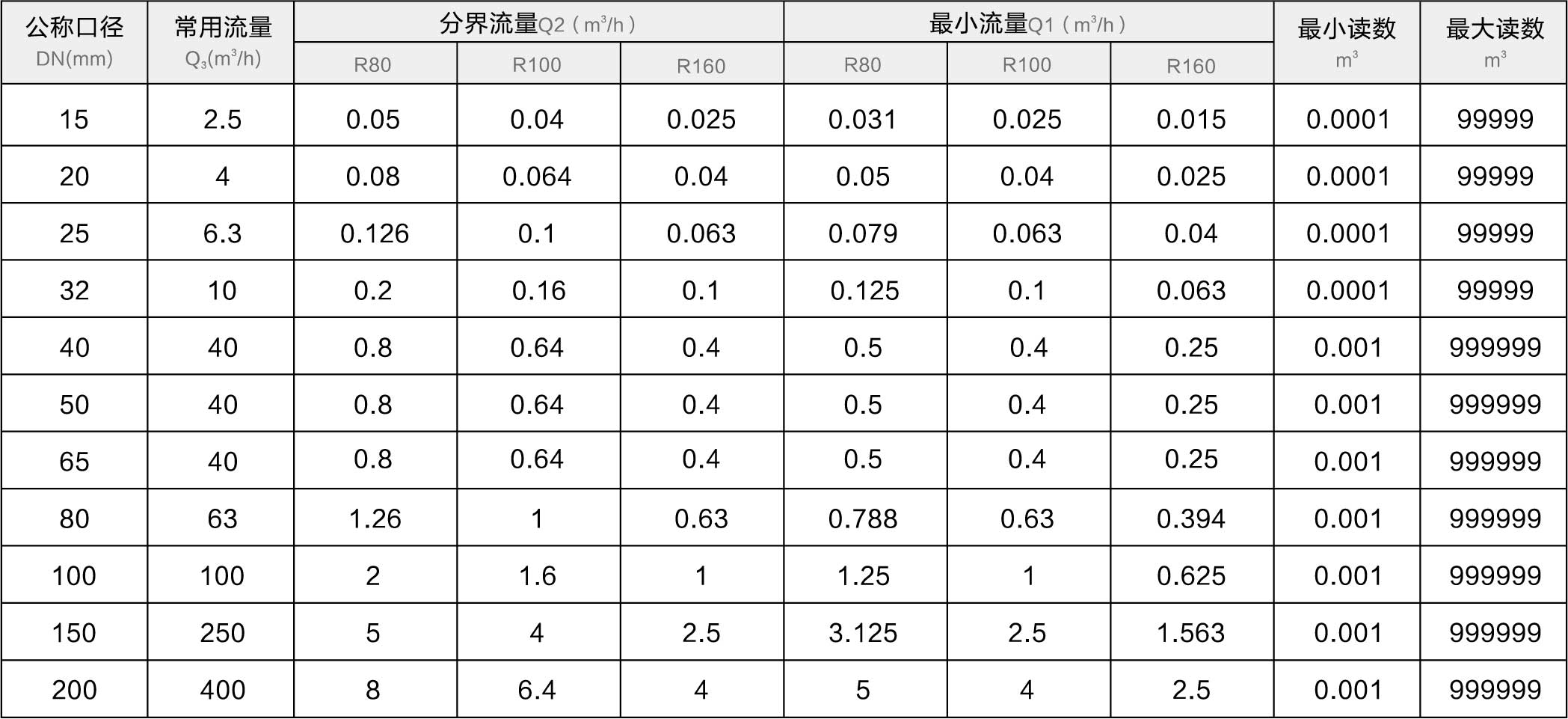 低区: 最小流量Q1≤Q<分界流量Q2 ±5%;